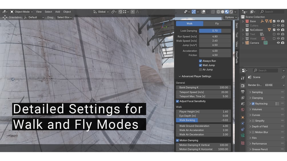 With walk and fly modes, a smart collision system, spawn points, and scripting support, OmniStep streamlines scene exploration, animation prototyping, and level design. It expands Blender’s versatility for both game development and animation, offering artists a new way to experience and interact with their creations.